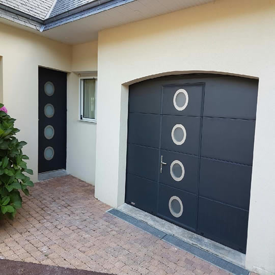 – portes sectionnelles, très appréciées pour leur isolation et leur ouverture verticale gain de place ;